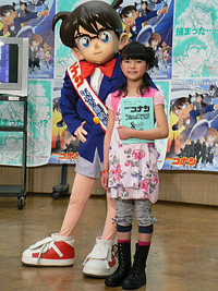 アフレコ後は、コナンと一緒に「真実はいつもひとつ!」の決めポーズを元気よく披露。実際にコナンがいたら?と聞かれると「少年探偵団に入れてもらってコナン君たちと事件を解決したいです」と答え、ホワイトデーにコナンからプレゼントをもらったら?との質問には「とっておきたい。食べられないです」と顔を赤らめていた。