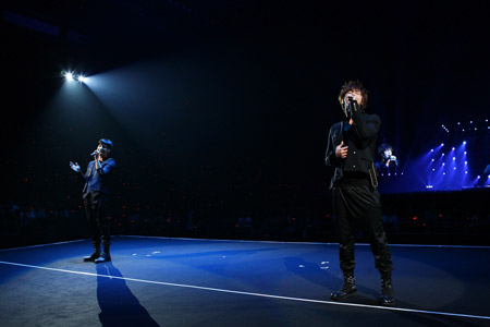 後半にはミニ・ライブも行われ、『BREAK OUT』や『ウィーアー!』など全5曲を熱唱。新曲『ANDROID』(7月11日発売)のパフォーマンスも初披露され、激しいダンスで場内を熱狂の渦に巻き込んだ。そして、「みなさんの前で初めて料理を作ったり、ギターを演奏したり、東方神起にとって、忘れられない、いい記憶(思い出)になりました」(ユンホ)、「今年はライブを何十回もしましたが、(ギター弾き語りで)今日が一番緊張しました! でも、めっちゃ楽しかったです」とにこやかにコメンすると、1万8000人のファンは惜しみない拍手を送った。