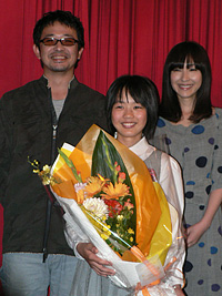 また、同映画の主題歌「SUNのSON」を手掛けた奥田民生も祝福に駆け付けた。慣れない舞台あいさつに、奥田は「人前は嫌いなんです。(ライブの)お客さんは人じゃなくて“イモ”ですから」と毒舌。主人公の少女を演じた甘利が「元気が出る曲ですね。今朝、車の中で『SUNのSON』をガンガン聴いてきました」と告白すると、奥田は感激し「僕も(曲を)ガンガン作ります!」と宣言していた。
