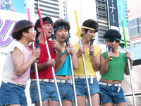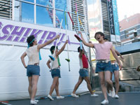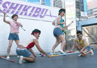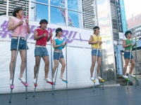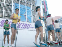 世界のナベアツが完全プロデュースした竹馬に乗ったアイドル・紫SHIKIBUが、東京・新宿でフリーライブを行った。デビュー曲『LOVEなんだよ』を披露し、歌と見事な竹馬で観客を沸かせた。