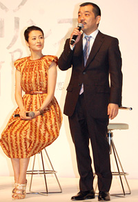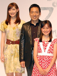 製作報告会見に出席した(左から)マイコ、香川照之、桑島真里乃