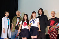 内田春菊の同名コミックを映画化した『吸血少女対少女フランケン』の初日舞台あいさつが15日に都内で行われ、川村ゆきえ、乙黒えり、斎藤工と、友松直之監督、西村喜廣監督が登壇した。