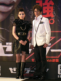 露出の多いセクシーな衣装で初のアクションに挑戦した仲は「身も心もすべて出し尽くしました。もう出すところはないんじゃないかというくらい」とアピール。すると、三池監督から「女優はどんどん出さなきゃ。あとはスッポンポンになるしかない」とさらなる露出を迫られ、仲は「そうですね。モザイクかけてもらえれば」と切り返した。哀川は「歌も踊りも殺陣もすごかった。下段の回しげりとかがさく裂してましたよ」と仲の熱演を大絶賛していた。