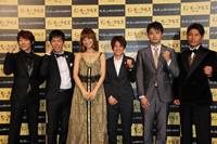 “戦いの神”として紹介された元K-1世界王者の魔裟斗は「神たちの肉体が凄い。なかなかあの身体は作れない。感化されて筋トレに気合が入った」と笑顔で回答。サッカーの女神として登場したなでしこジャパンの近賀は、ワールドカップで獲得した金メダルを披露。「ゴールドはいい色なので、また同じ色を持って帰れるよう頑張りたい」とロンドンオリンピックへ向けての意気込みを語ると、会場からは大きな拍手がおこった。