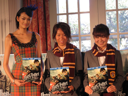 10年にわたるシリーズの最終作として今夏に劇場公開され、100億円に迫る日本興行収入を記録した『ハリー・ポッターと死の秘宝 PART2』。そのブルーレイ・DVDが16日(水)に発売されるのを記念した記者発表が英国大使館で行われ、モデルの冨永愛と、女子サッカー・なでしこジャパンにも名を連ねた岩清水梓、岩清水と同じ日テレ・ベレーザに所属する小林弥生が登壇した。