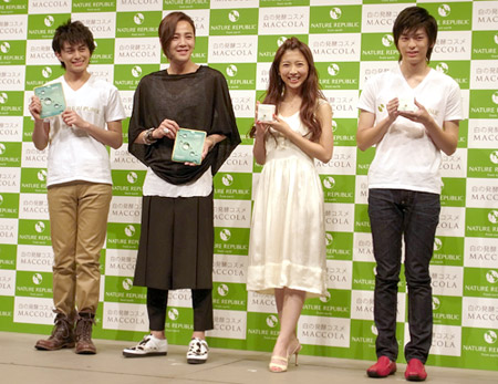 この日は、同ブランドの広報活動を行う、小林豊と安倍龍太郎からなる「ネイチャーリパブリック・ボーイズ」の任命式も行われた。チャン・グンソクはふたりに記念の楯を授与し、「わたしより兄貴だと思いましたけど、若いんですよね? 高校3年生? いい時だね~」としみじみコメント。そして、同ブランドについて「韓国の代表的なブランド。安いけどとてもよい製品なので、日本のみなさんも使ってみてください!」とPRした。