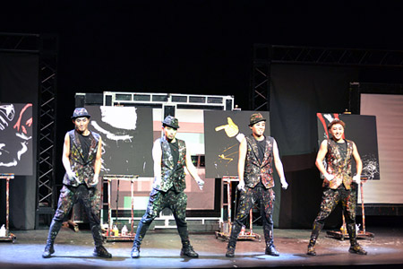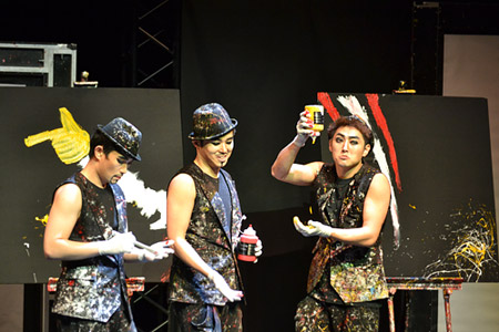 同公演は、4人のパフォーマーが古今東西のHERO達をテーマにダンスとコントを織り交ぜ、最先端の映像技術と様々な美術技法を駆使して絵を描くアートパフォーマンス。4つのキャンパスに4人のパフォーマーがそれぞれ絵を描く「アクションペインティング」や水を張った大きな水槽にペイントを落として描く「マーブリング」、暗闇の中で絵が消えたり浮かんだりする「夜光ドローイング」など、さまざまなステージを展開。ノンバーバル・パフォーマンス(せりふがない劇)のため、老若男女、国籍問わず誰もが楽しめるのが魅力のひとつで、観客参加によるイベントも用意されている。