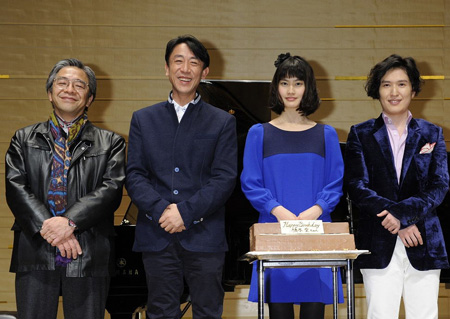 第8回“このミステリーがすごい!”大賞を受賞した中山七里原作の同名小説を映画化した『さよならドビュッシー』の完成報告イベントが17日、東京・銀座のヤマハホールで行われ、主演を務める橋本愛をはじめ、本作で俳優デビューを飾った現役ピアニストの清塚信也、俳優としても活躍し10年ぶりにメガホンを執った利重剛監督らが舞台あいさつに立った。