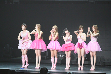 同所での単独ライブは約1年ぶり。新リーダーに就任したキュリは「去年に続き、この舞台に立つことができて本当に嬉しいです」とはにかみ、ソヨンが「去年よりも楽しいライブを作りましょう!」とキュートに呼びかけると、6人は新シングル『TARGET』(7月10日発売)を初披露。また、ヒット曲『Bo Peep Bo Peep』や『バニスタ!』、日本オリジナルユニット・QBSの『風のように』、同じく派生ユニット・T-ARA N4の『Dangerous Love』、ソヨンのソロ曲『愛の詩』など個性豊かなパフォーマンスで全20曲を熱唱した。