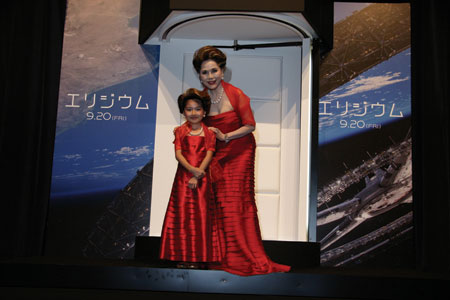 『第9地区』のニール・ブロムカンプ監督がマット・デイモン、ジョディ・フォスターをキャストに迎えて放つ最新作『エリジウム』の特別試写会が17日に都内で行われ、デヴィ夫人と小林星蘭ちゃんがスペシャルゲストとして登場した。
