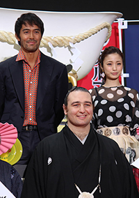 (左奥から)阿部寛、上戸彩、(手前)琴欧洲関