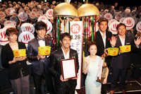 そして前回の“濃い顔”覇者、北村が上戸にトロフィーを授与。上戸の美しい背中を生で見た阿部は、撮影時を振り返り「正直、いやらしい目で見ていました」とまさかの告白をし、爆笑をさらっていた。また本作の出来に原作者のヤマザキも「いつの間にか、この映画がみなさんの肉体の共演の場になっていて(笑)。肉体美を堪能させようという姿勢が大好きです」とお墨付きを与えた。