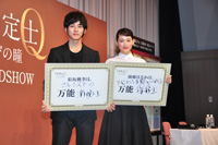 映画『万能鑑定士Q -モナ・リザの瞳-』の試写会が26日に都内で開催され、上映前の舞台あいさつに主演の綾瀬はるかと松坂桃李が登壇。映画にちなんで、“顔相”と“心理”の鑑定を受け、その結果から最も向いている職業が割り出された。