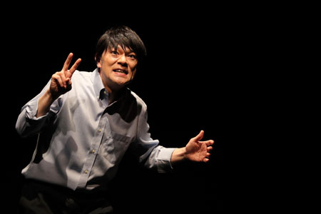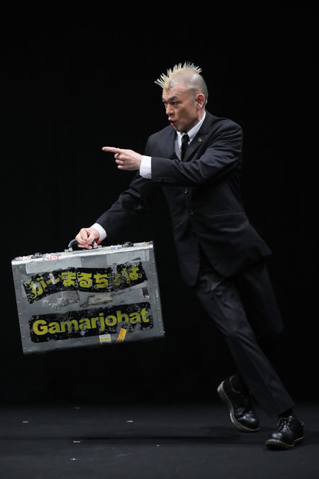 今年春、約20年にわたってコンビを組んできたケッチ!が脱退、「が~まるちょば」の看板をひとりで担うことになったHIRO-PONによる、これは最初の舞台。が~まるちょばはいったい何処へ?といぶかしむ間もなく、ステージは彼らの代名詞ともいえる「が~まるSHOW」で幕を開け、「太陽にほえろ!」「初めての手術」や「ドラゴン─怒りのラーメン─」──と、新旧の小品が次々と演じられる。冒頭でこそ、「あれ、もうひとりは?」とおどけた身振りでソロの舞台を印象付けたが、おなじみのジュラルミンのスーツケースが登場し、観客をしつこく巻き込んだり、おかしな人物を演じたりと、ワクワク感にあふれた舞台は紛れもない「が~まるちょば」のステージだ。最後は人情味たっぷりの長編「指輪」で感動を誘う。或る男の不遇の人生と、出会い、別れ、幸せをセリフなしでドラマティックに見せていく、まさに彼らのパントマイムの真骨頂だ。