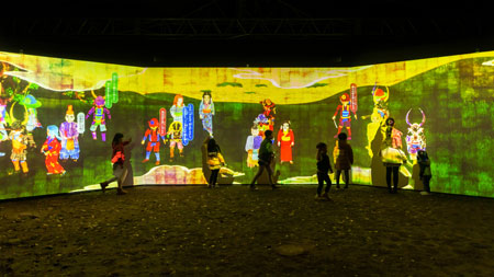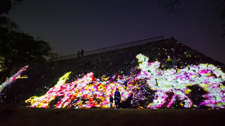 “チームラボ”は、アーティスト、プログラマ、エンジニア、CGアニメーター、数学者、建築家など、様々な分野のスペシャリストから構成されているウルトラテクノロジスト集団。そんな彼らが手がけるプロジェクトのひとつ、「街が街のままアートになる」をコンセプトに、今回も、美しい石垣が残る福岡城跡の中心部約2万平米が、人々の存在によって変化するインタラクティブ(双方向)な光のアート空間へと姿を変える。