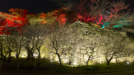 夜の城跡全体が空間アートで、写真映えするスポットも多い。カップルからファミリー、もちろんひとりでもそれぞれのペースで幻想的な光の空間を楽しむことができるのが魅力だ。