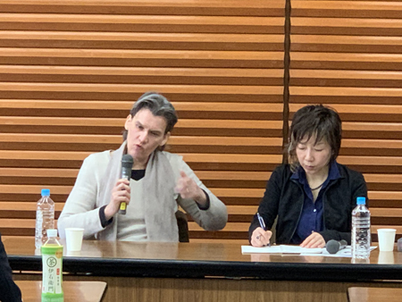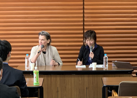 カロリーネ・グルーバーはオーストリア出身の女性演出家。世界中の歌劇場が熱い視線を送る彼女は、すでに二期会の舞台でもおなじみだが、年に数回はプライベートで来日するというほどの日本びいきで、この日のトークイベントも、旅行中に急きょ引っ張り出されたのだそう。