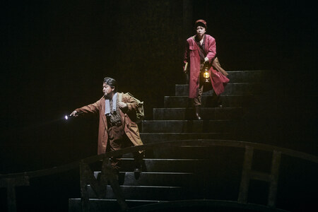 《フィデリオ》は、政敵に捕らえられた夫を救う妻の救出劇。演出の深作健太はこれを、20世紀以降のさまざまな政治の対立構造によって自由を奪われた人々とその解放の歴史の軸の上に配置した。キーワードは「壁」だ。オペラ全編が「壁の物語」として描かれる。ナチの強制収容所の壁。冷戦体制下のベルリンの壁。そして現在進行中のイスラエルの分離壁。しかしそうした、いわゆる「読みかえ」が台本やベートーヴェンの音楽を飲み込んでしまうことはなく、オペラの物語自体はそれらと絶妙な距離感を保って自立している。ネタバレになるので詳細は避けるが、最後には、ベートーヴェンらしい「苦悩を突き抜けて歓喜へ」の気分を、客席と舞台一体となって劇場全体で共有できる仕掛けも施されている。