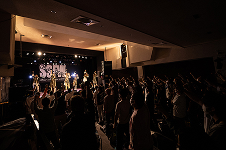 2部制のこの日、1部はゲストに我儘ラキアを迎えての対バン形式の有観客ライブ、2部はワンマンでの有観客&配信ライブと1日2公演をこなした大阪☆春夏秋冬。地元・大阪でのワンマンは、昨年の6月末以来1年3か月振りということもあり、密にならないように設定された所定の席数は早々にソールドアウト。特に「完全版 BRAVE SOULS -Re Start-」と題して、7月にCDリリースした最新アルバム『BRAVE SOULS』収録の全10曲を1曲目から順に全曲パフォーマンスするという趣向で行われた2部のワンマンは、この日ステージ初披露のハードなパンク・チューン『AxMxMxRx to The End』、『Start Over』、『Get up for your right』の3曲のおかげもあり、大阪☆春夏秋冬史上もっともロック色の強いステージになったといえるだろう。