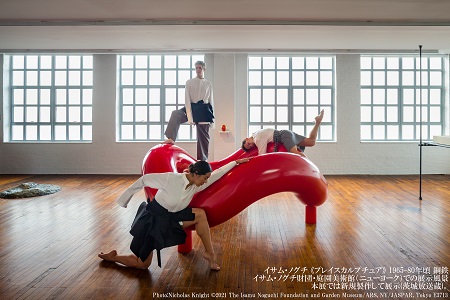 「第2章 かろみの世界」では、“軽さ”をテーマに、折り紙にヒントを得た金属彫刻や、スタンド型の「あかり」などを紹介。またノグチは遊具のデザインにも情熱を傾けており、真紅の遊具彫刻《プレイスカルプチュア》を新規制作し展示する。さらに展示室の一角には、ノグチがデザインしたソファとオットマンが据えられ、ノグチ作品を実際に体感することも出来る。