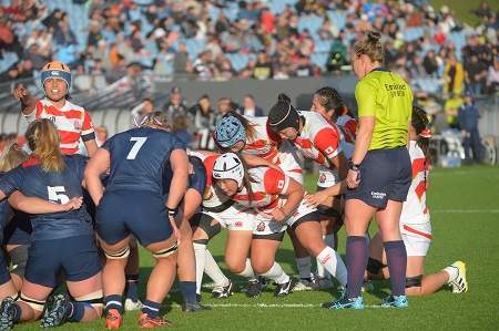 スクラムを組むPR南早紀主将 (C)JRFU