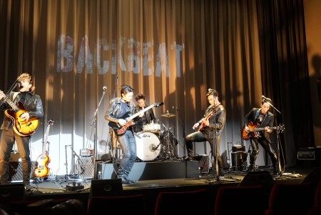 2019年に上演され、好評を博した舞台『BACKBEAT』。再演の幕開けを飾る製作発表は、「Rock And Roll Music」のラウドなバンドアンサンブルから始まった。主人公であるスチュアートを演じる戸塚祥太(A.B.C-Z)、ジョン・加藤和樹、ジョージ・辰巳雄大(ふぉ~ゆ~)、ポール・JUON(FUZZY CONTROL)、ピート・上口耕平が、続けて「Love Me Tender」「Long Tall Sally」とビートルズナンバーを演奏。既に初演を通じて共に演奏してきただけに、チームワークの確かさを感じさせる。