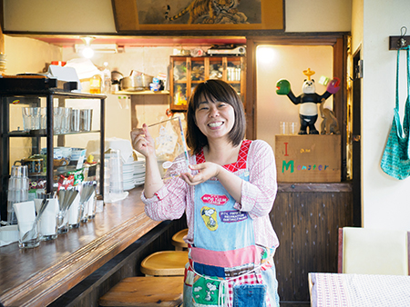 「第3回 究極のカレーAWARD」総合GPを記念した盾が手渡され、満面の笑みを見せる「ガネーシュN」店主のたかこさん。