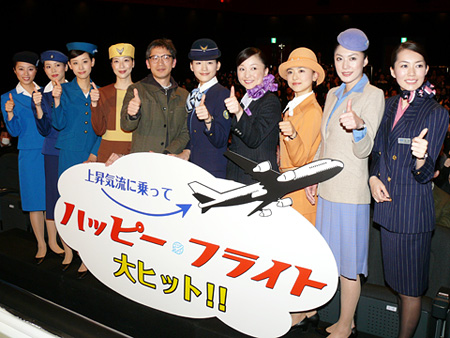 綾瀬はるかをはじめANA歴代のCA制服を着たキャスト陣と、矢口史靖監督