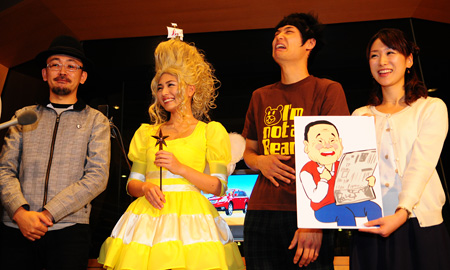 (左から)FROGMAN監督、川村ゆきえ、もう中学生、堂真理子アナウンサー