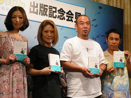 (左から)松雪泰子、原作者の金城浩二さんと美佐江夫人、岡村隆史