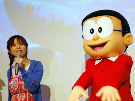 のび太くんと、大原めぐみ。のび太くん、手がラッパーみたいになってる!