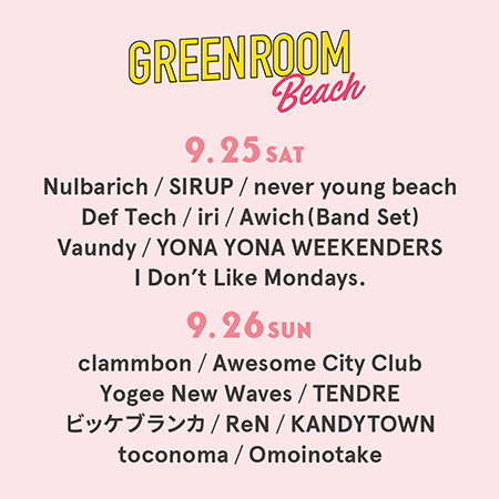 TOP> ニュース> 音楽> 『GREENROOM BEACH』最終出演アーティスト発表!